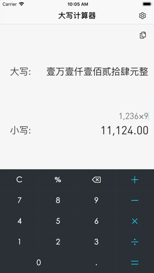 但是大写写起来麻烦,如果有一款计算器在计算到结果后直接转换成大写写法,不仅省了一个计算器,还可以轻易准确的写出大写写法,起步美哉。