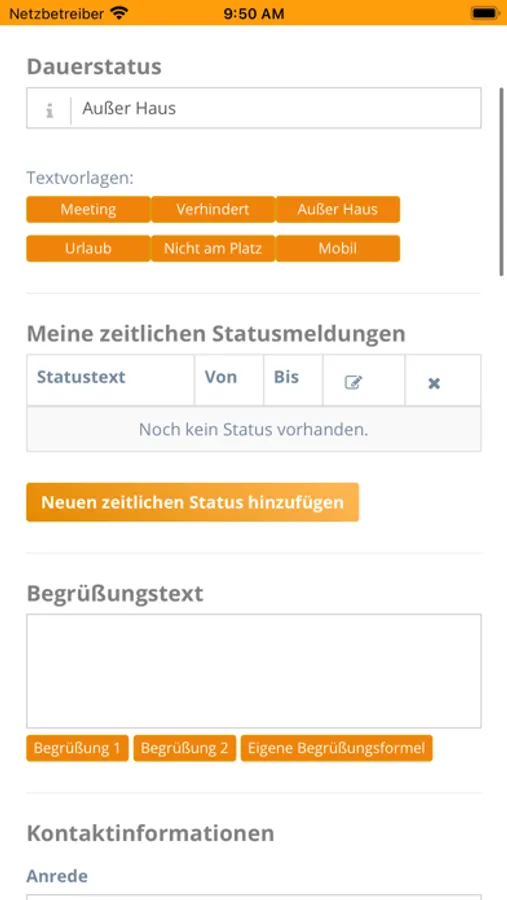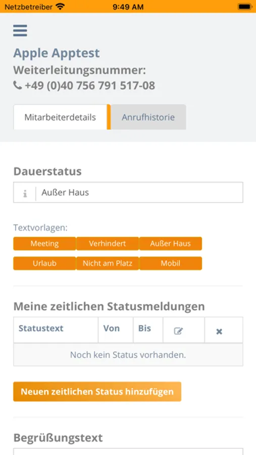 Der „Status“ ist Ihre persönliche Schaltzentrale im Mobile Office 360° Tool. Unter dieser Rubrik können Sie alle Einstellungen für Ihr persönliches Telefonsekretariat einrichten.