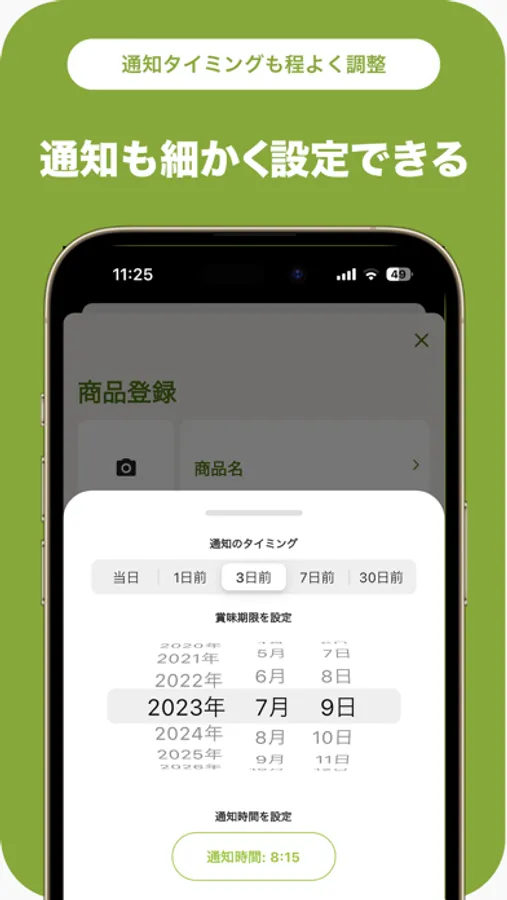 ・賞味期限日に通知