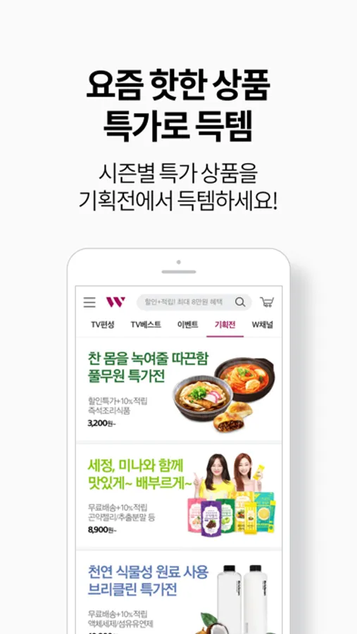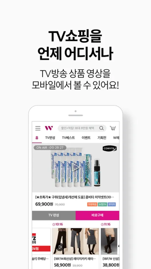 지금까지 볼 수 없었던 새로운 쇼핑, W쇼핑에서 함께하세요!
