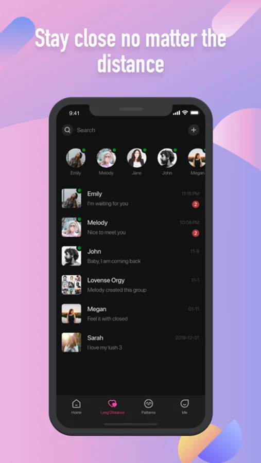 Use two smartphones to drastically increase your partner's control range. This is perfect for those wanting discreet public play within larger spaces. Simply connect with your partner's phone within the app and give up control! The person with a toy should have their smartphone within 3-5 feet of them at all times. The app can run in the background, so it can be in your purse or pocket while your partner has complete control via their smartphone. This feature is also great for long distance couples.