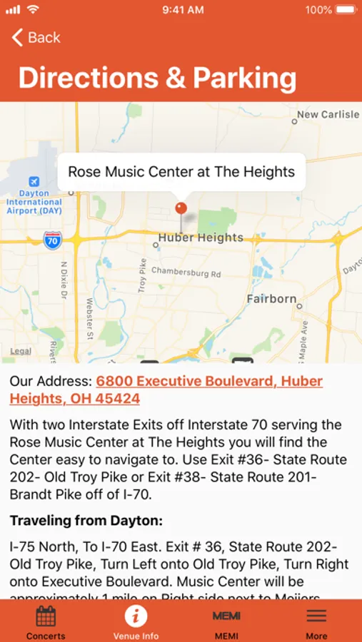 The Rose Music Center at The Heights is a 4,200 seat fully covered outdoor amphitheatre located in The Heights development. The Heights is a destination retail, dining and entertainment district. Located conveniently off of I-70 in Huber Heights, Ohio. The Center is owned by The City of Huber Heights and managed by MEMI- Music Entertainment Management Inc.