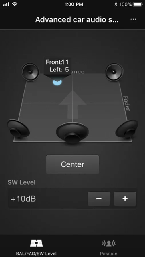Full settings of Fader/Balance/Subwoofer, and Listening Position are available using smartphone as a remote screen.