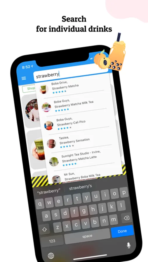 find the best boba shops and individual drinks around you. currently working for SF bay area and Irvine.