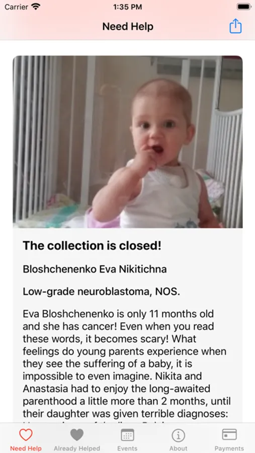 Children whose photos are published in the application need expensive treatment or a rehabilitation course. They can also be helped. Any contribution to the charity fund for helping children will reward us with a happy, healthy generation that can make the world around us better, cleaner and kinder. All funds raised by a charity children's fund have a specific recipient. In the app we publish full financial information about all our projects.