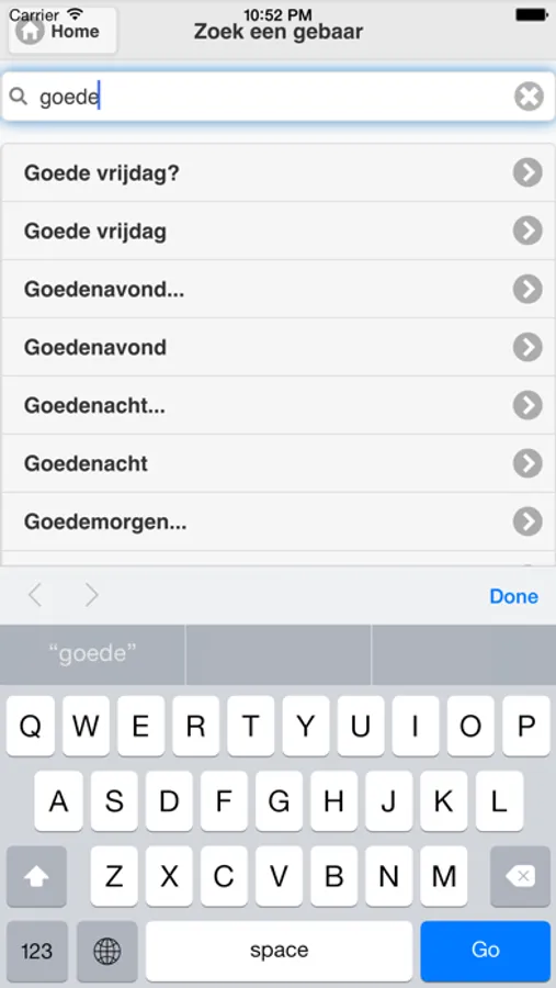 Met deze app heb je keuze uit lijst van 4000 gebaren. Er is wel continu een internetverbinding nodig om ze op te kunnen zoeken. Ook is er een leuke spel om gebaren te koppelen aan een van drie woorden.