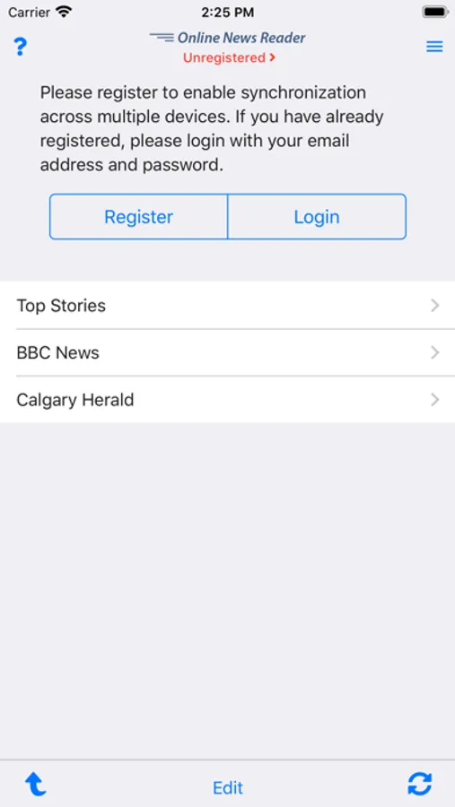 You can customize the launch page to enable one-touch access to your favorite news sites. If you register with your email address and a password, you can synchronize your favourites across multiple devices.