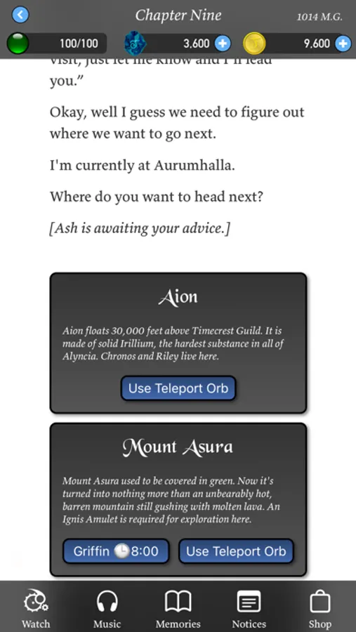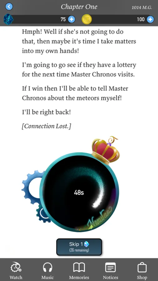 Timecrest is a young adult fantasy where you are the main character. A young mage named Ash contacts you frantically through a pocket watch connecting to your iPhone asking for your help. Ash’s world, Alyncia, is about to be destroyed by falling meteors, but you demonstrate the ability to save Ash’s world by turning back time.