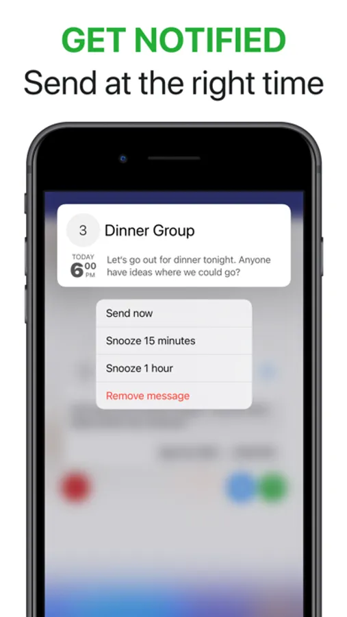 Just as when sending a regular text message, you select a person and write your message. Then you choose the date and time for the message to send. When the time comes, you will get a notification that will allow you to send the message. It integrates with the built-in Messages app, so it comes from you in your normal conversations.
