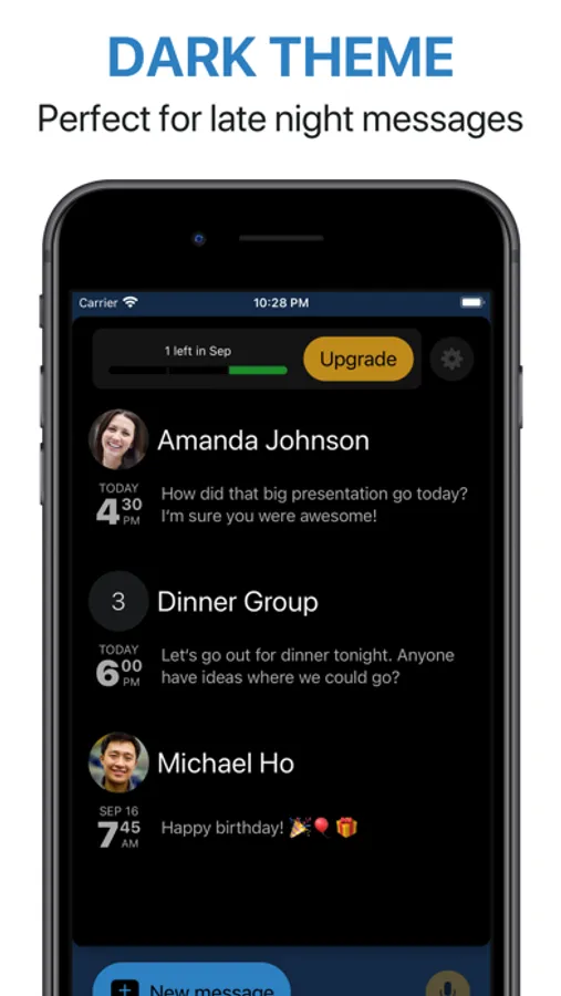 A gorgeous dark theme makes writing and scheduling messages in low light easy on your eyes. And with automatic switching from light to dark themes, you can always have the best experience for the moment.