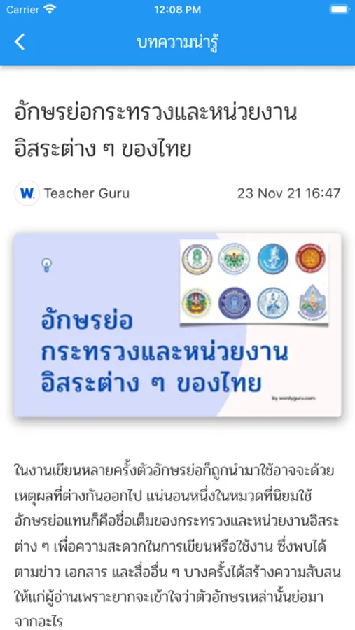 ประเทศไทยของเรามีตัวย่อ คำย่อ อักษรย่อ และคำสั้น ๆ เยอะเสียจนบางคนแปลผิดแปลถูก บางครั้งไม่รู้ว่าย่อมาจากอะไร ยิ่งตอนฟังข่าวหรืออ่านหนังสือพิมพ์เล่นเอาปวดหัวไปตาม ๆ กัน ต่อไปนี้ไม่ต้องปวดหัวอีกแล้วเพราะแอปพลิเคชันนี้ได้รวบรวมอักษรย่อมาไว้ในมือคุณ