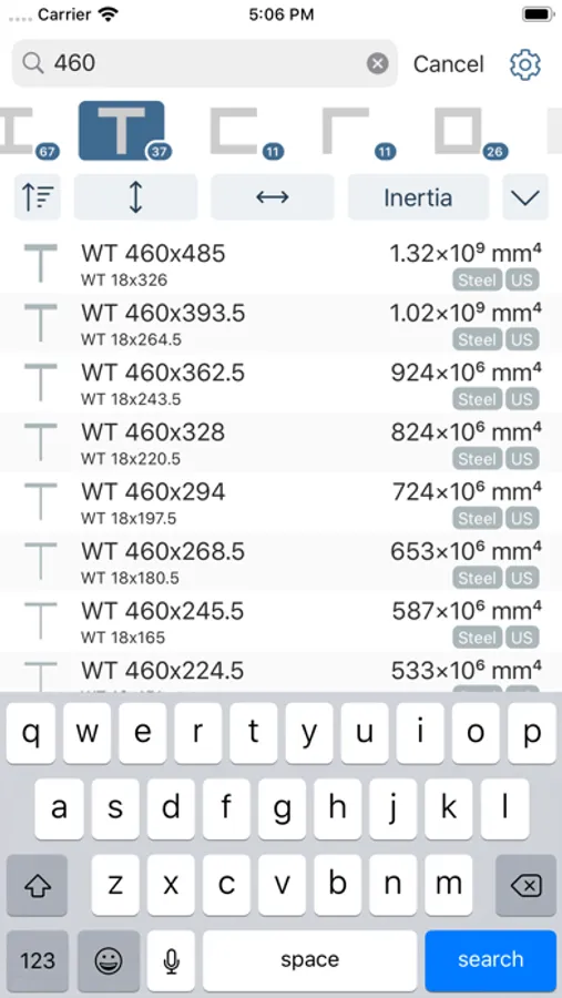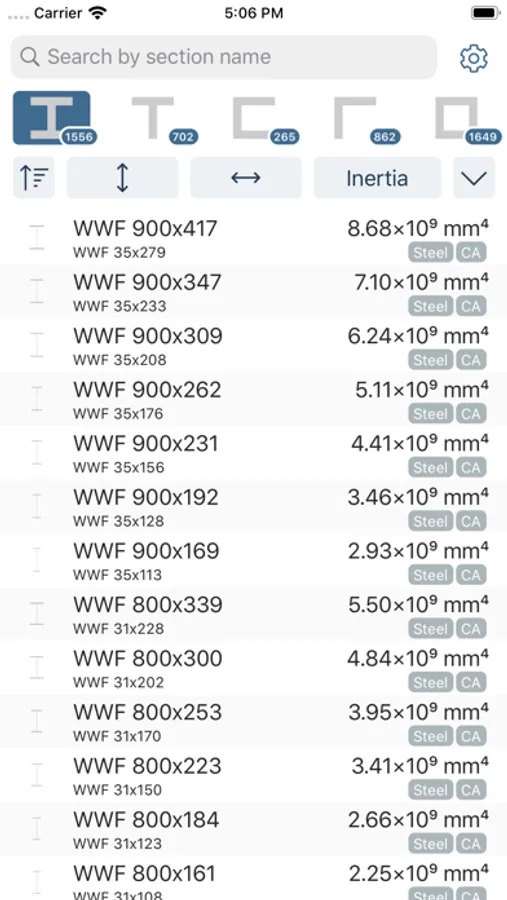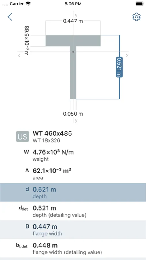 Includes most international steel sections, as well as some aluminum and wood shapes.