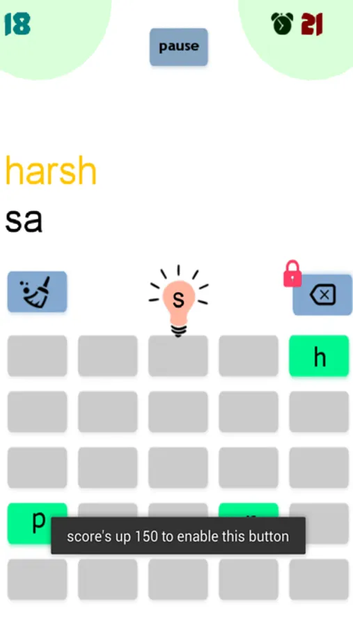 -Score 150 in normal game mode for enable Backspace button.