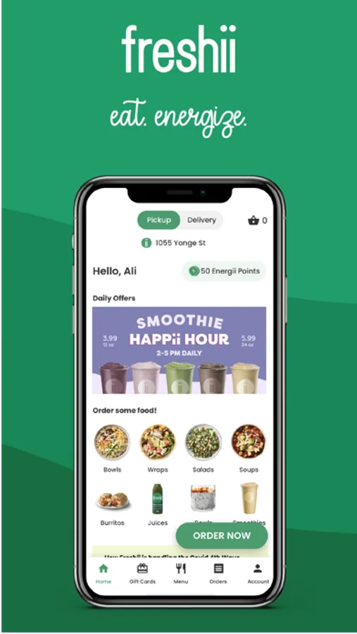 The freshii app is a convenient way to earn Energii Points on your faves and get access to exclusive offers and rewards. You can easily customize your order, and save your favourites items for quick re-ordering.