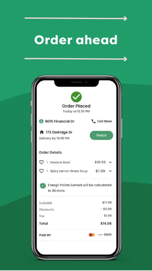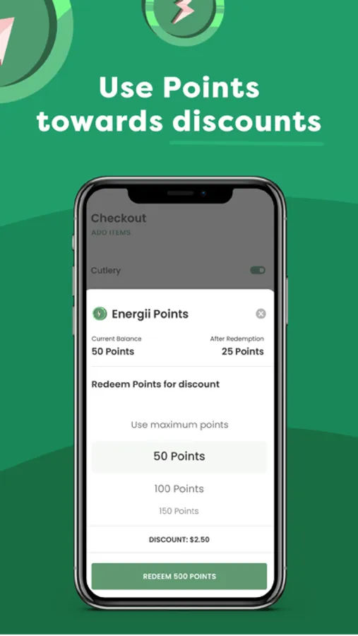 Earn Energii Points on every purchase that you can use for discounts off your meal.