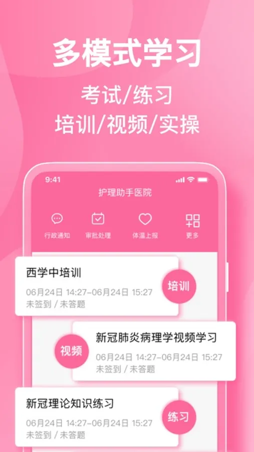 注:护理助手是一款针对医院内部护士培训的平台工具,暂时不支持用户自主登录