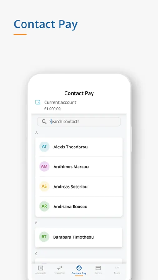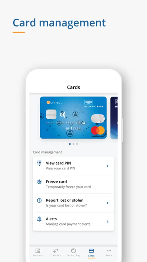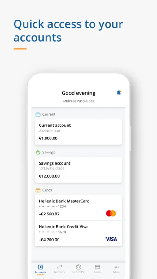 • Contact Pay - Easy and instant payments to your smartphone’s contacts, from your Hellenic Bank accounts