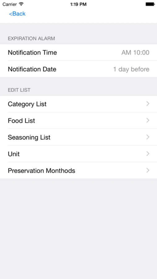 -Establishment of 'category', 'food name', 'number of units' and 'preservation methods' according to personal need.