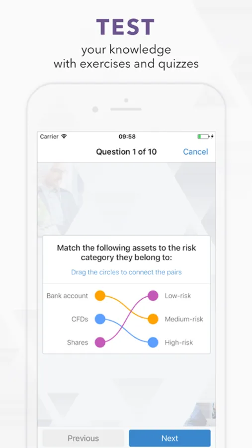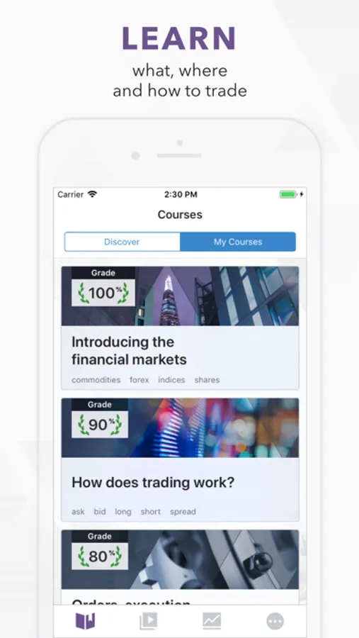 Interactive exercises, videos, interesting facts and graphics give you a detailed yet engaging introduction to trading. And once you’ve studied the theory, you can check your understanding with a quick post-course quiz.