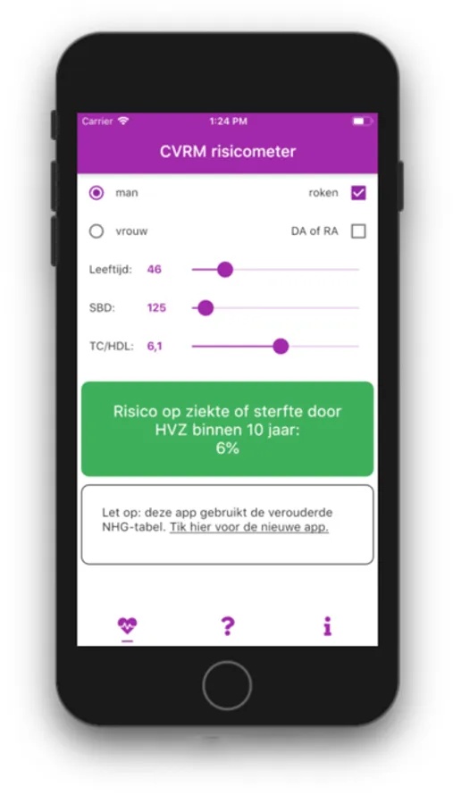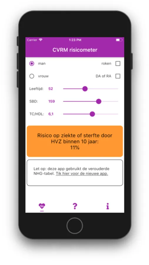 Deze app werk volgens de NHG-richtlijn uit 2012. Wilt u met de nieuwe richtlijn (juli 2019) werken? Gebruik dan de CVRM-risicometer 2019.