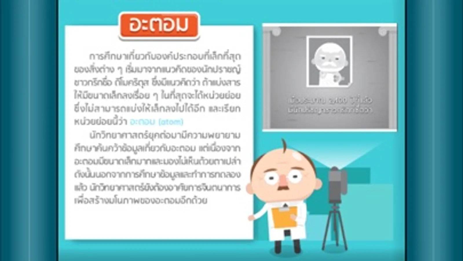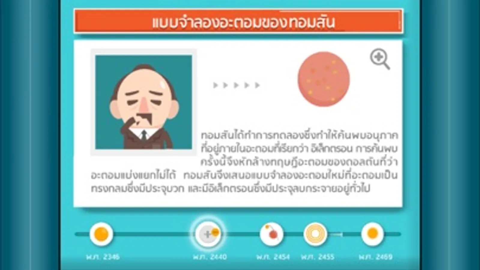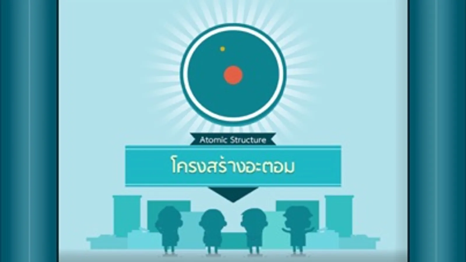 หนังสือเรียนอิเล็กทรอนิกส์ เรื่อง โครงสร้างอะตอม (Atomic Structure) เนื้อหาเกี่ยวกับวิวัฒนาการของแบบจำลองอะตอมของธาตุ มีการระบุชนิดและสมบัติของอนุภาคมูลฐานในอะตอมของธาตุ อธิบายความหมายเลขอะตอม เลขมวล และไอโซโทป เขียนและแปลความหมายของสัญลักษณ์นิวเคลียร์ อธิบายความสำคัญของการศึกษาโครงสร้างอะตอม