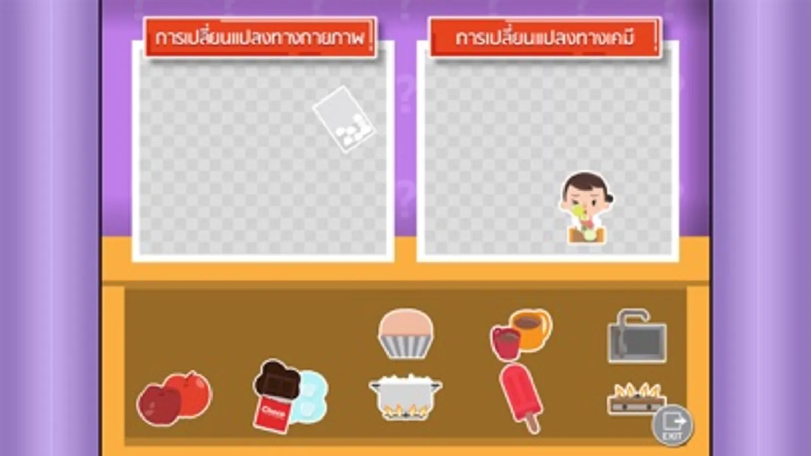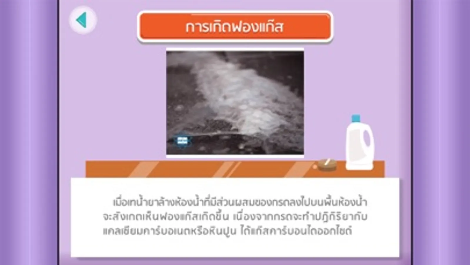 หนังสือเรียนอิเล็กทรอนิกส์ เรื่อง ปฎิกิริยาเคมี (Chemical Reaction) เนื้อหาเกี่ยวกับการเปรียบเทียบและยกตัวอย่างการเปลี่ยนแปลงทางกายภาพและการเปลี่ยนแปลงทางเคมี ระบุสารตั้งต้น ผลิตภัณฑ์และสถานะของสารจากสมการเคมี การใช้ประโยชน์จากปฎิกิริยาเคมีในชีวิตประจำวัน อธิบายปัจจัยที่ทำให้ปฎิกิริยาเคมีเกิดขึ้นได้เร็วหรือช้า อธิบายและยกตัวอย่างปฎิกิริยาเคมีที่ให้พลังงานและการนำพลังงานไปใช้ประโยชน์