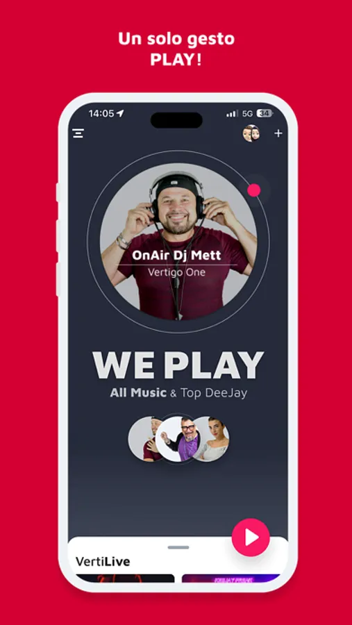 Divertiti ad interagire con noi in tempo reale tramite la Box Line o le note vocali, ri-ascolta il tuo programma preferito nella sezione podcast oppure scegli il tuo stile musicale in VertiPlay.