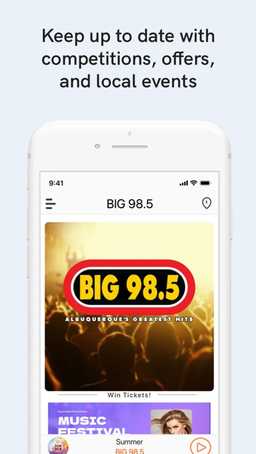 Never be without your favorite radio station. BIG 98.5 is proud to present our OFFICIAL radio app.