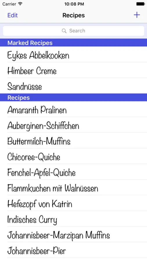 To find that recipe you are just thinking of, just start typing into the search field to search within recipe names, tags and/or notes.