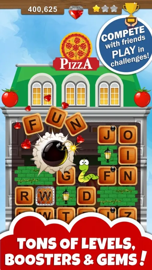 Word Wow BIG CITY will sharpen your brain as well as your reflexes. Help a worm out!