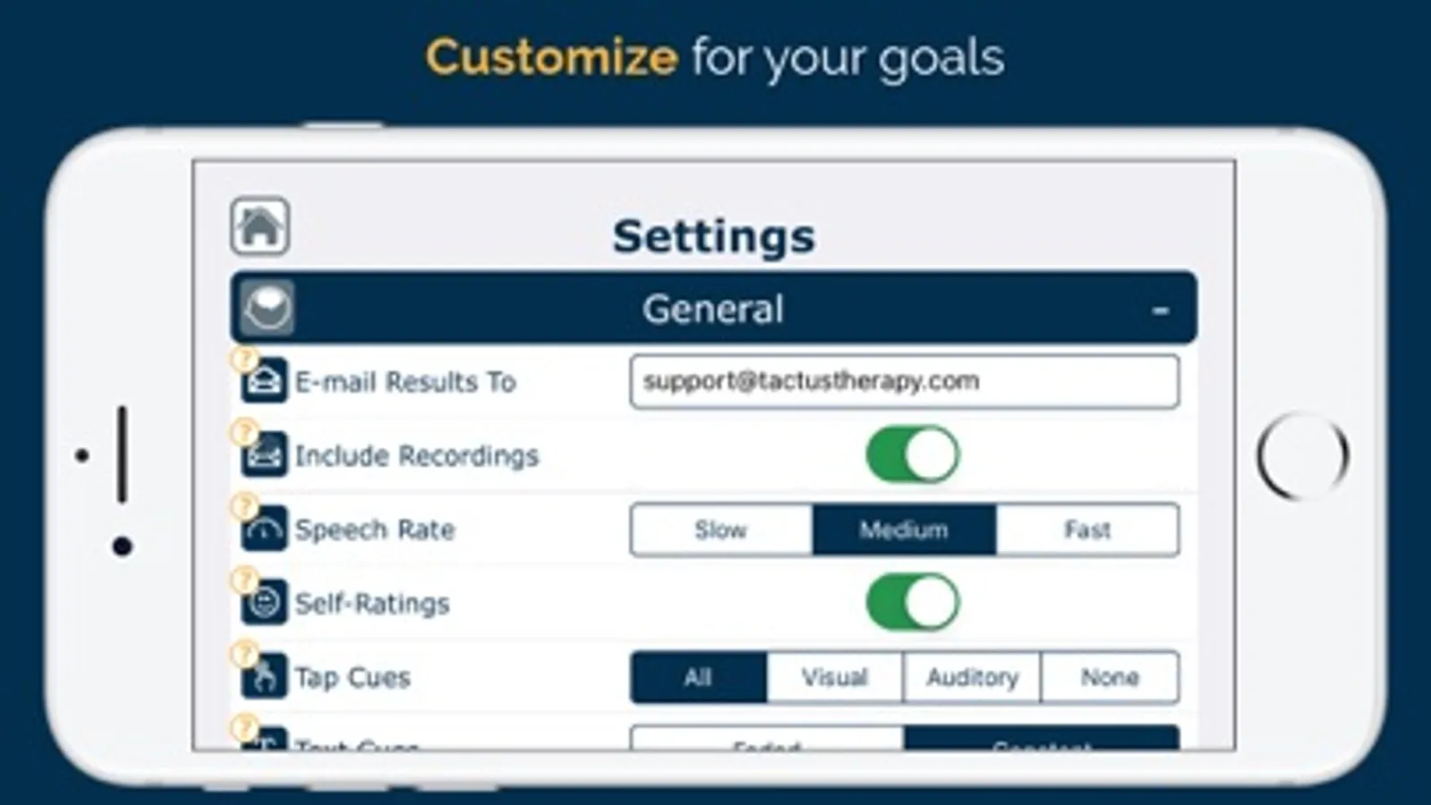 - Use e-mailed reports and customizability to seamlessly fit the app into your therapy program