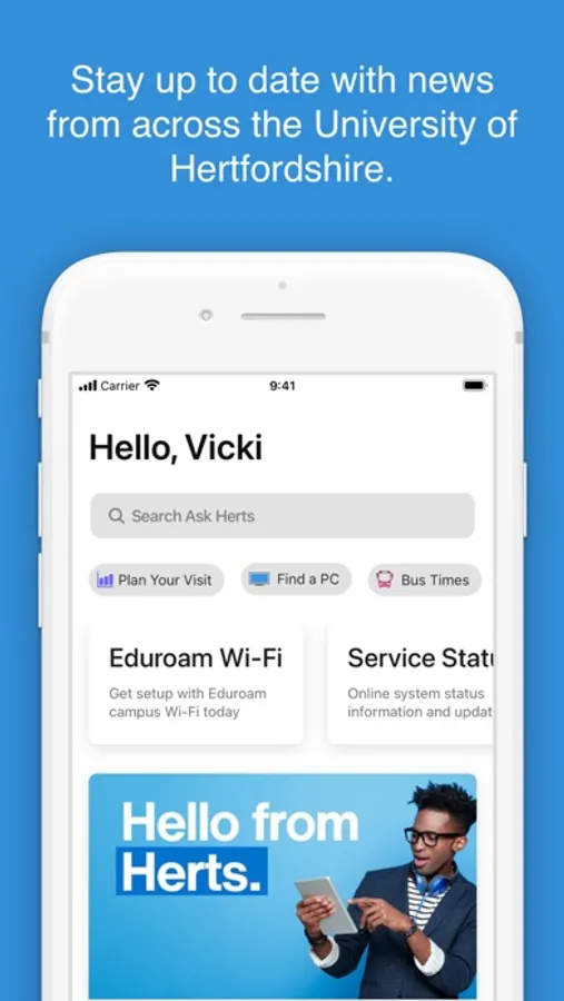 Herts Mobile, the app for University of Hertfordshire Students, Staff and Visitors.