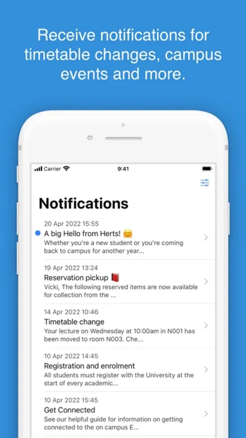 - Receive notifications for timetable changes, events and more. Choose the types of notification you’d like to receive so you only get the updates you’re interested in.