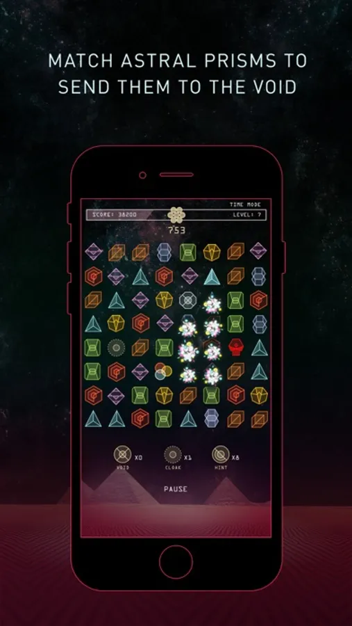 How to play: similar to a jewel-style matching game, swap the prisms to make matches of 3 or more, and then send them into the void. Experience the Tapjoy Mobile Value Exchange™ first-hand: if you choose to interact with our in-app ads, you will be rewarded with energy and essential power-ups to keep playing.
