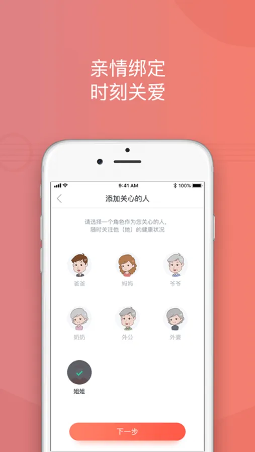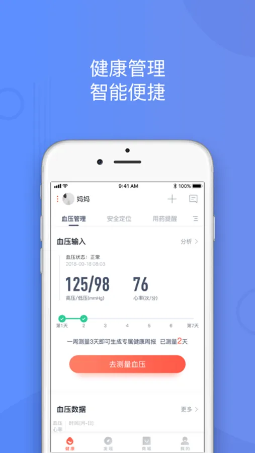 欢孝APP能满足家庭子女照顾老人的需要,子女通过APP和智能血压仪或其他硬件测量血压,测量血糖后传回i欢孝后台。子女在i欢孝上随时查看父母的健康数据。