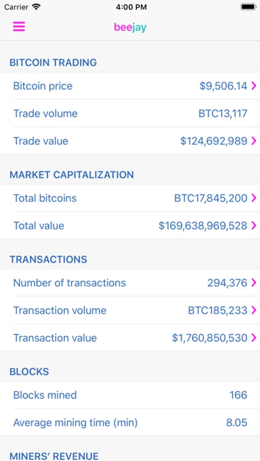 BlockJockey is the best tool to explore Bitcoin related data. The app provides a comprehensive overview of the most relevant economic and technical data in a dashboard as well as charts regarding the development of specific quantities over time.
