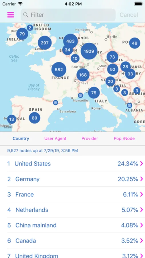 Get geographical data for the world-wide distribution of the full nodes constituting the Bitcoin network