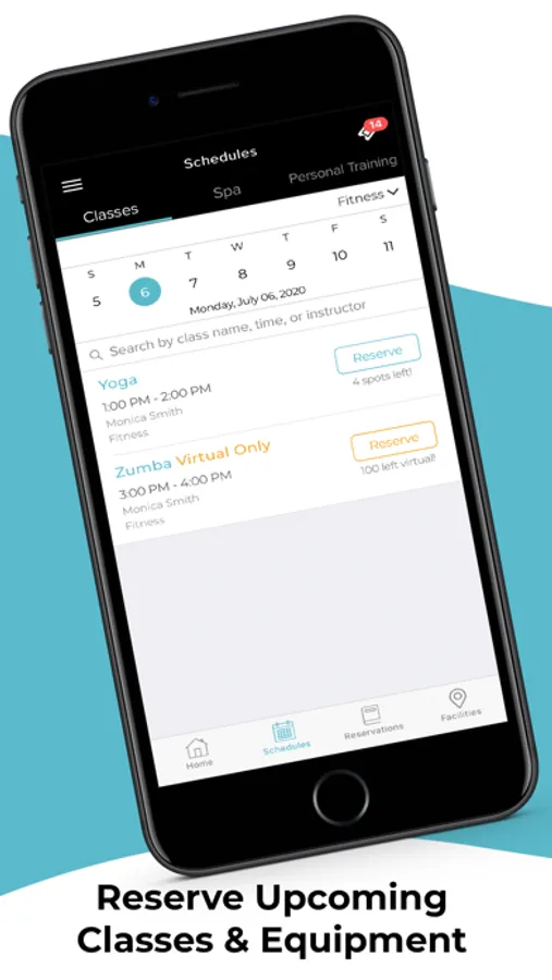 Easily find and reserve group fitness classes, events and equipment in advance to create your wellness schedule.