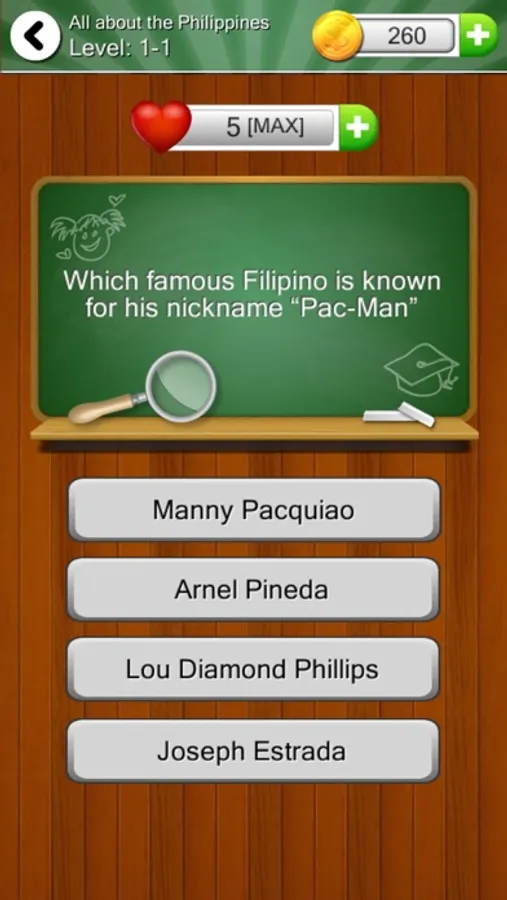 This game contains questions about sports, history, geography, general knowledge about the Philippines.