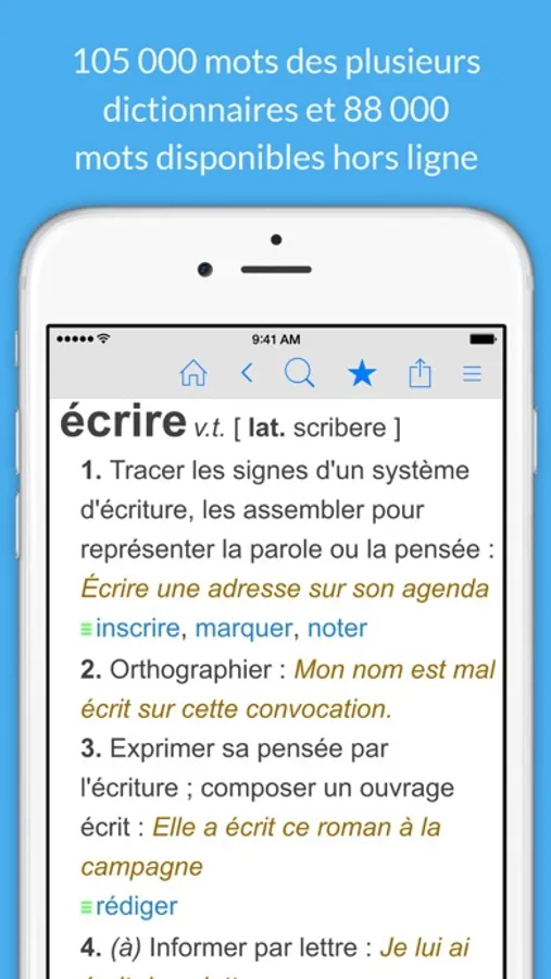 * + de 88 000 mots disponibles dans le dictionnaire hors ligne.