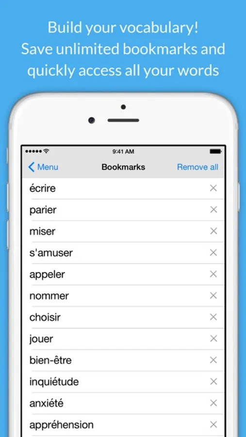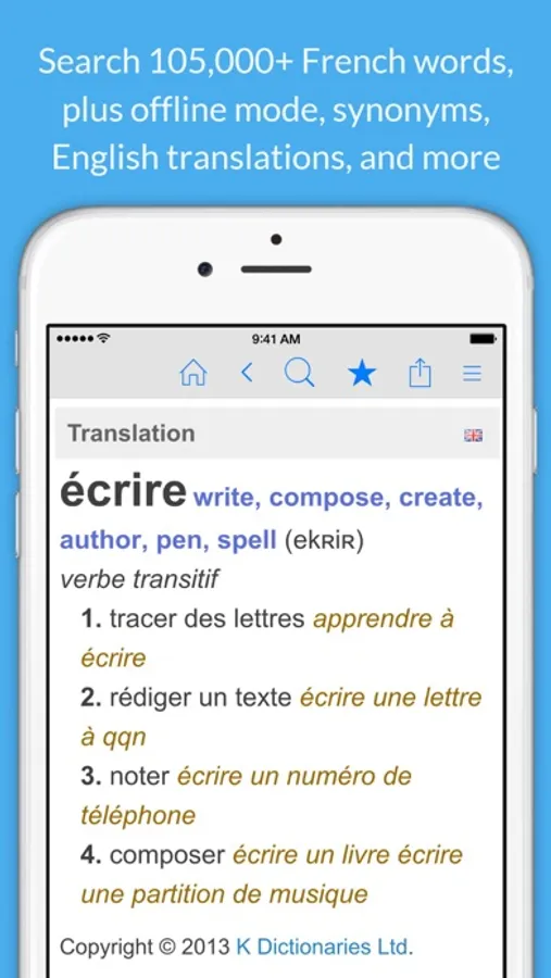 * 88,000+ words available in the free offline French dictionary. No additional downloads required!