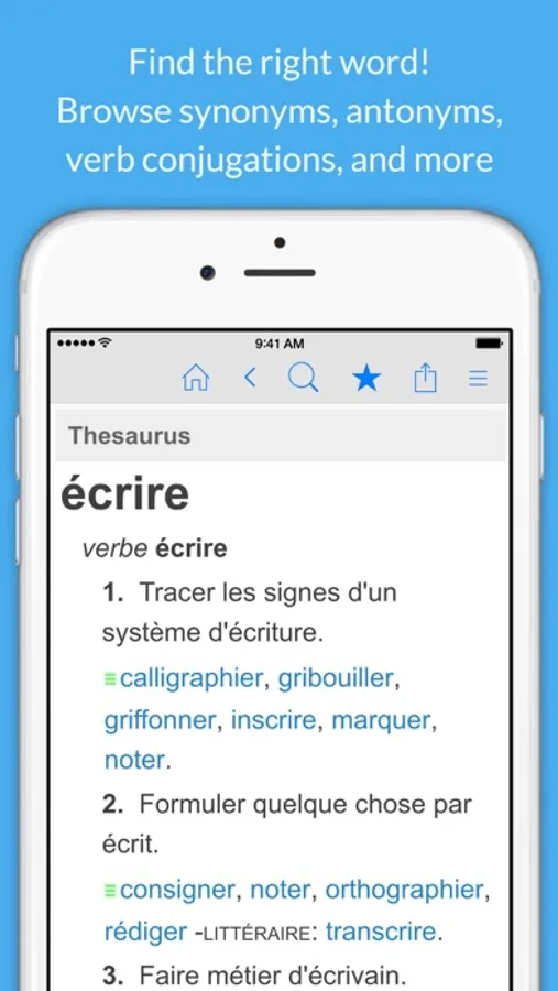 * 105,000+ French definitions, including verb conjugations, all from authoritative sources.