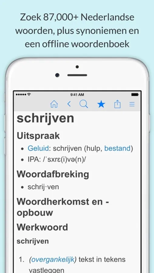 * 85,000+ woorden beschikbaar in de gratis offline Nederlands woordenboek. Geen extra downloads nodig!