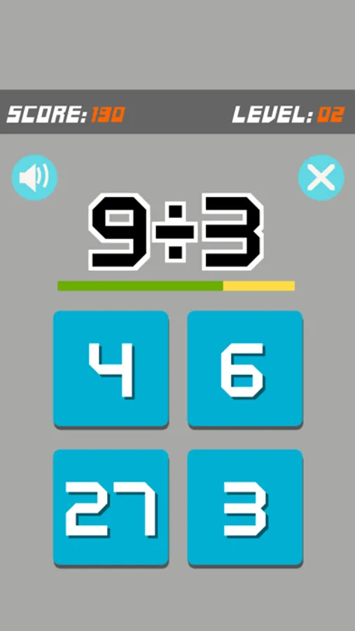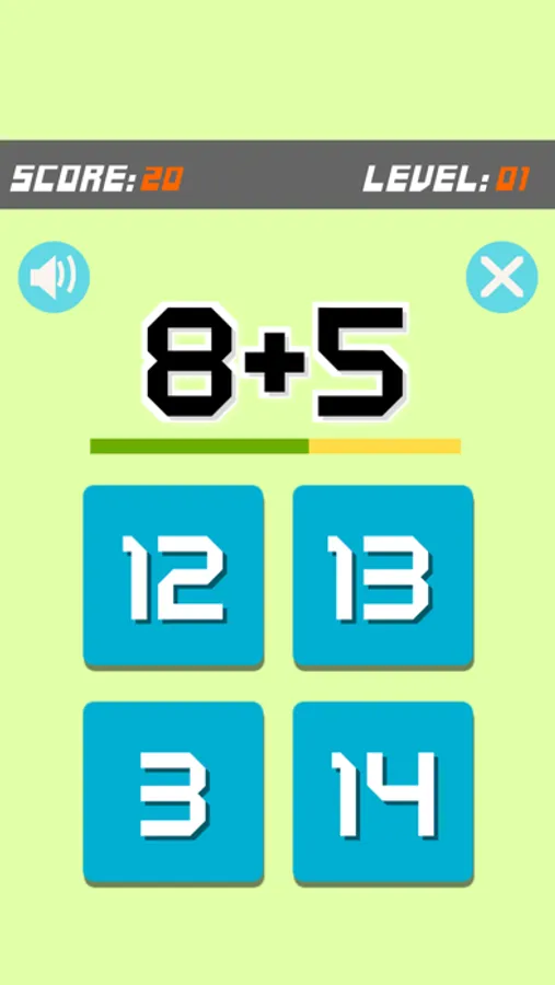 Test your math skill in this intense infinite-runner type fast paced game. Answer a series of math questions involving addition, subtraction, division, and multiplications before the timer runs out. Every time you get a correct answer, you get more time. Test your mental calculation skills. How long can you go? How high can you score. Can you find tricks to answer the questions without calculating the every whole equations?