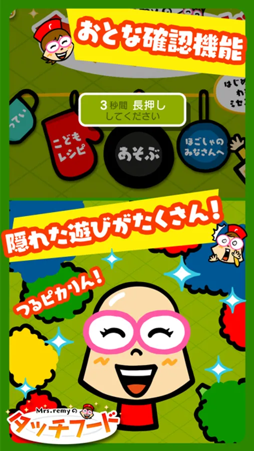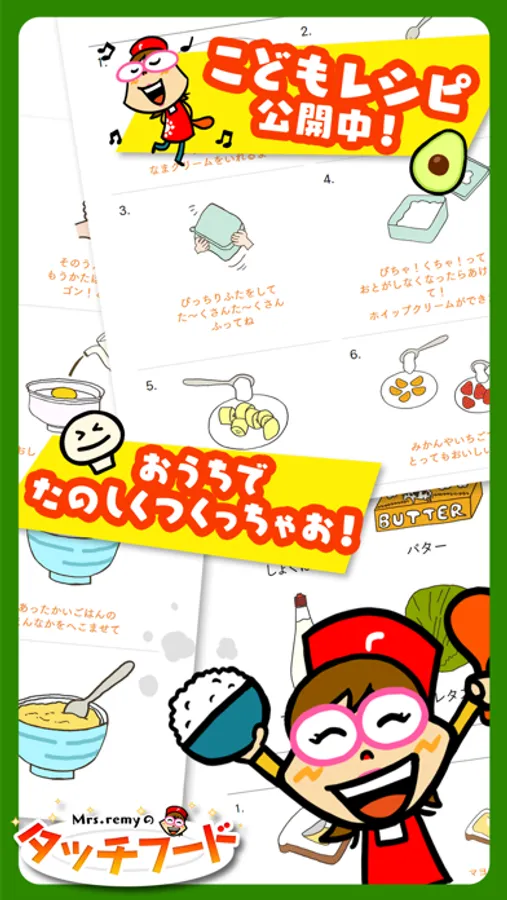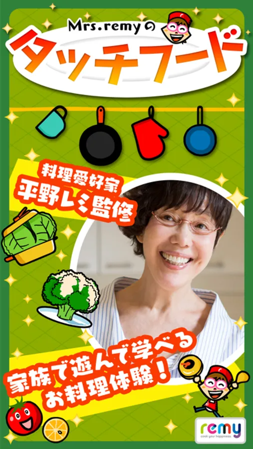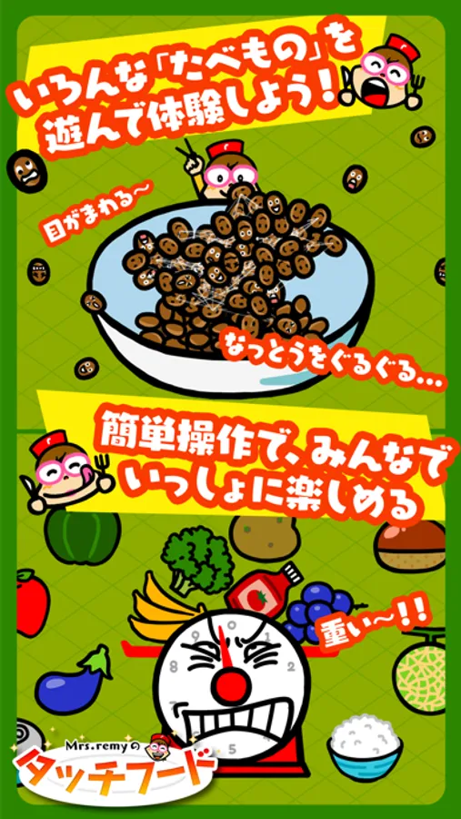 「Mrs.remyのタッチフード」は、“食育”と“知育”をエンターテイメントで融合させた、あたらしい子供向けアプリです。食にまつわる様々な“遊び”を通して、お子様の想像力や、考える力、そして豊かな心を育てます。