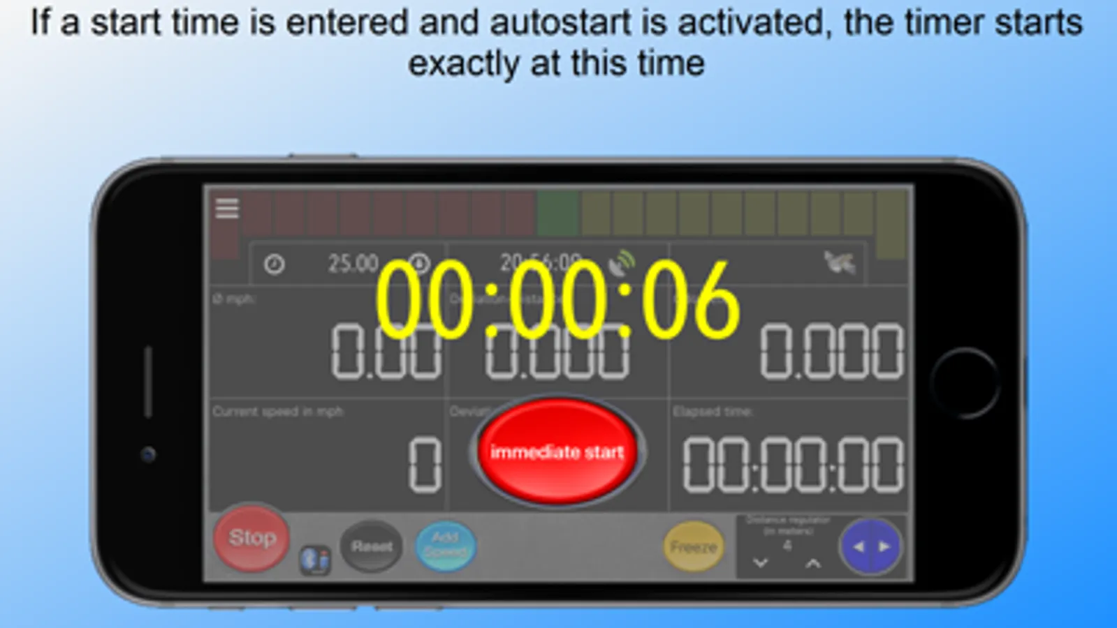 Speedpilot indicates the average speed not only with nummeri but visually with a progress indicator.
