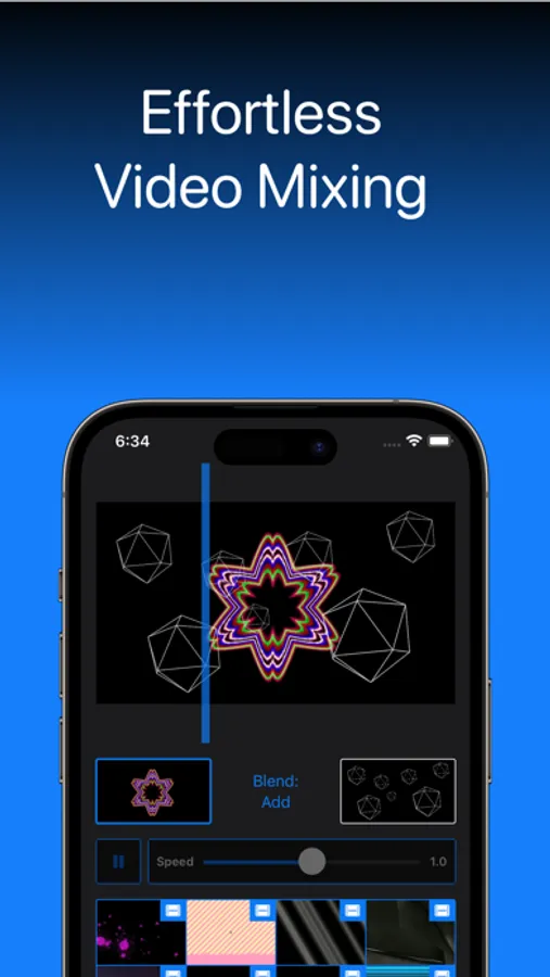 - Mix videos or photos, loaded into the app from your Photo Library, or via Files app