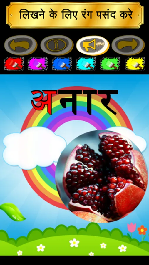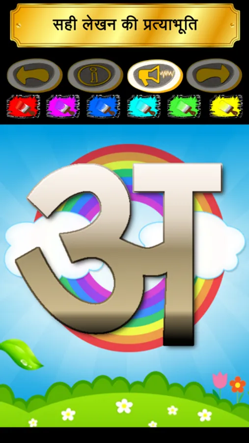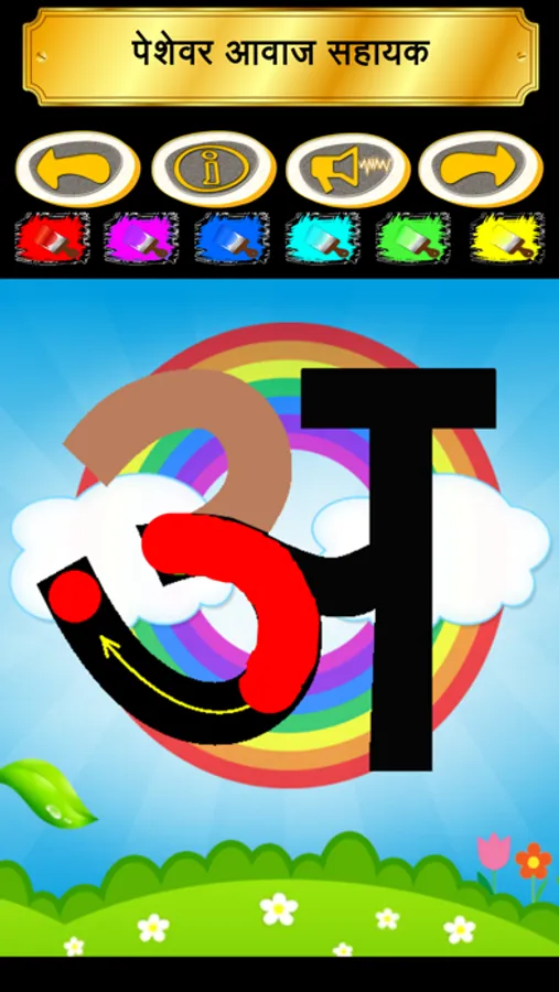 With bright colours and interactive elements, this hindi writing app helps to keep your child curious and with a hunger to learn. Our application will help to prepare your child for his or her upcoming education from ages 4-6. The app teaches your child to correctly trace letters with their finger - a skill that they can then translated to a pen or pencil when the time comes. With accompanying images and a choice of colours to paint with, Write Hindi Alphabets is guaranteed to keep your child interested from day one to a time that they no longer need the application and knows to write all abcs. Tracing of abcs is separated into easy steps accompanied by bright arrows and our unique big green and red circles signing where to begin and where to stop tracing.