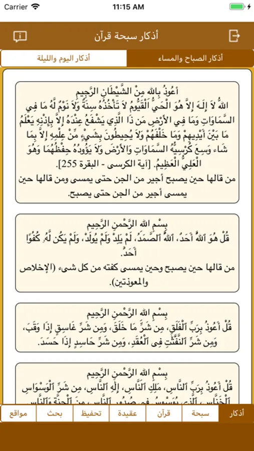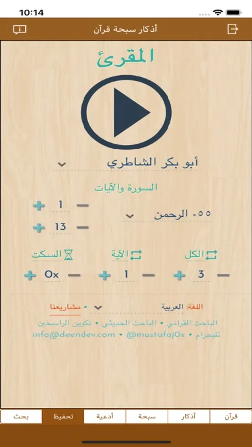 برنامج سهل الإستعمال يضم أذكار الصباح واليوم - سبحة - قرآن - أسماء الله الحسنى - مختصر للأصول الثلات والقواعد الأربع - صفحة الباحث القرآني والتحفيط للقرآن الكريم - روابط مختارة ودليل سلطان للمواقع الإسلامية. البرنامج سهل وميسر لعمل اليوم والليلة والحصول على معلومات ميسرة صحيحة في العقيدة والربط بمواقع هامة. اللهم إجعله عتقا لمصممه من النار.