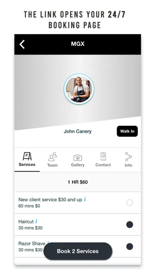 Show your services, prices, business address, gallery and cancellation & rescheduling policies from your profile which means you’ll have a virtual business card with 24/7 booking abilities built right in so your clients can see everything they need while booking